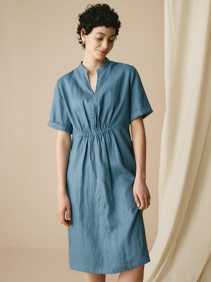 100% Linen Scoop Neck Half Placket Shirt Dress BELVA