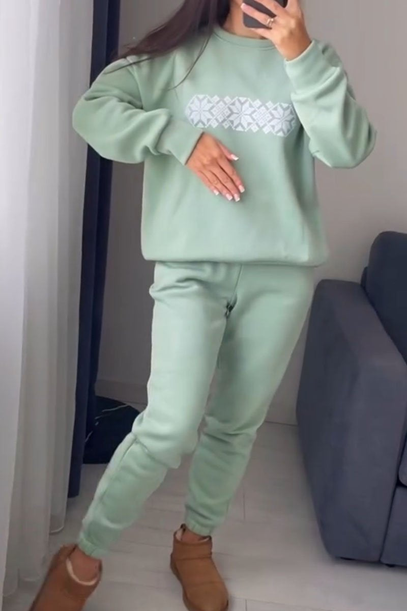 Women's Casual Snowflake Print Long Sleeve Two Piece Set