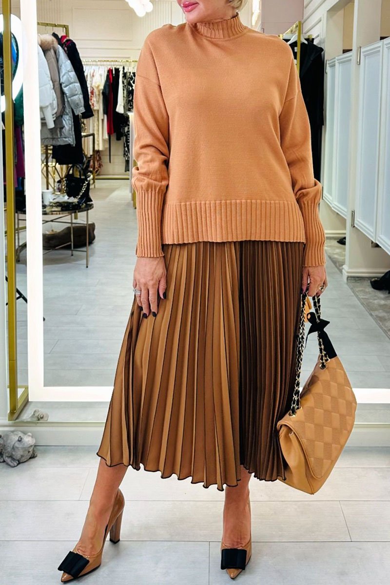 Women's Turtleneck Long Sleeve Sweater and Skirt Two Piece Set