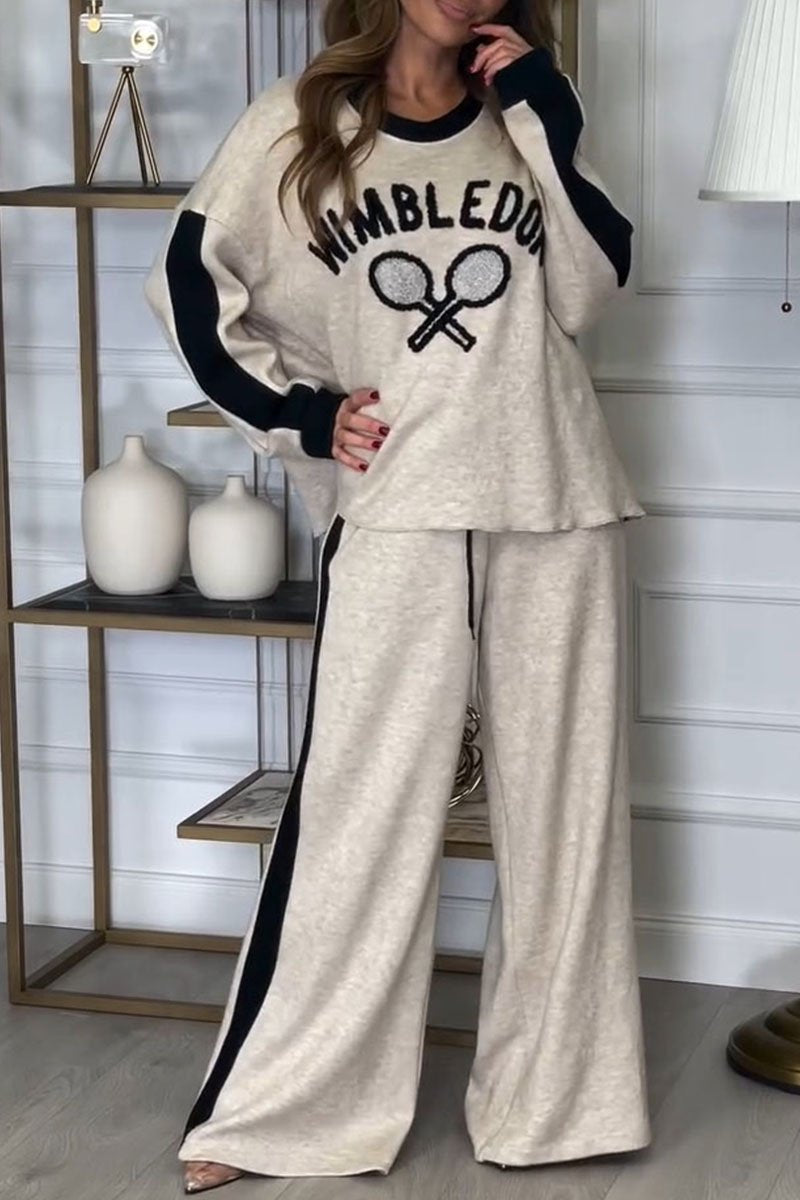 Women's Round Neck Long Sleeve Spliced sweatshirt Two Piece Set