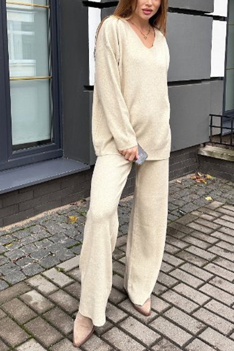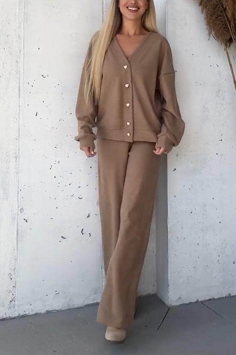 Women's Casual V-neck Solid Color Single-breasted Two-piece Suit