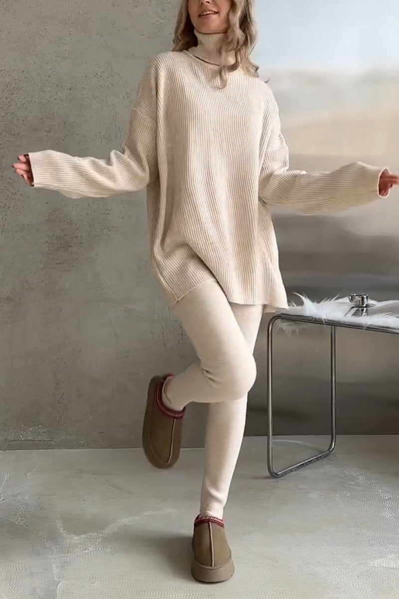 Women's Turtleneck Long Sleeve Sweater Two Piece Set
