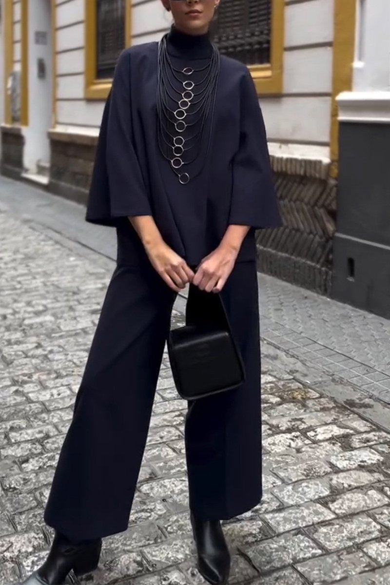 Women's Casual Square-neck Solid Color Long-sleeved Three-piece Suit