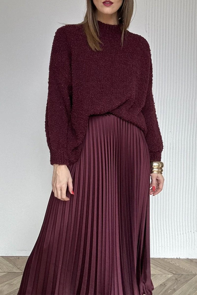 Women's Round Neck Long Sleeve Top and Skirt Two Piece Set