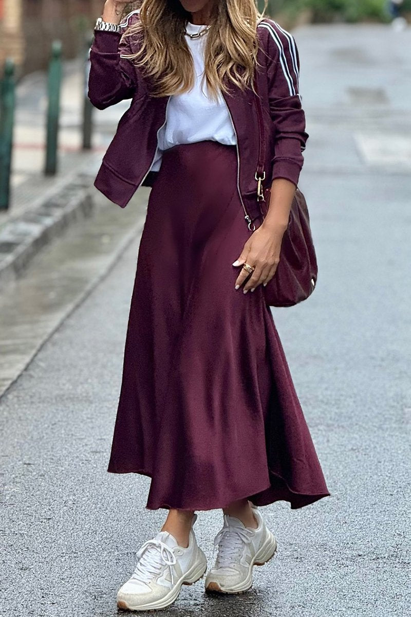 Women's Long Sleeve Fashion Tops and Skirts Two Piece Set