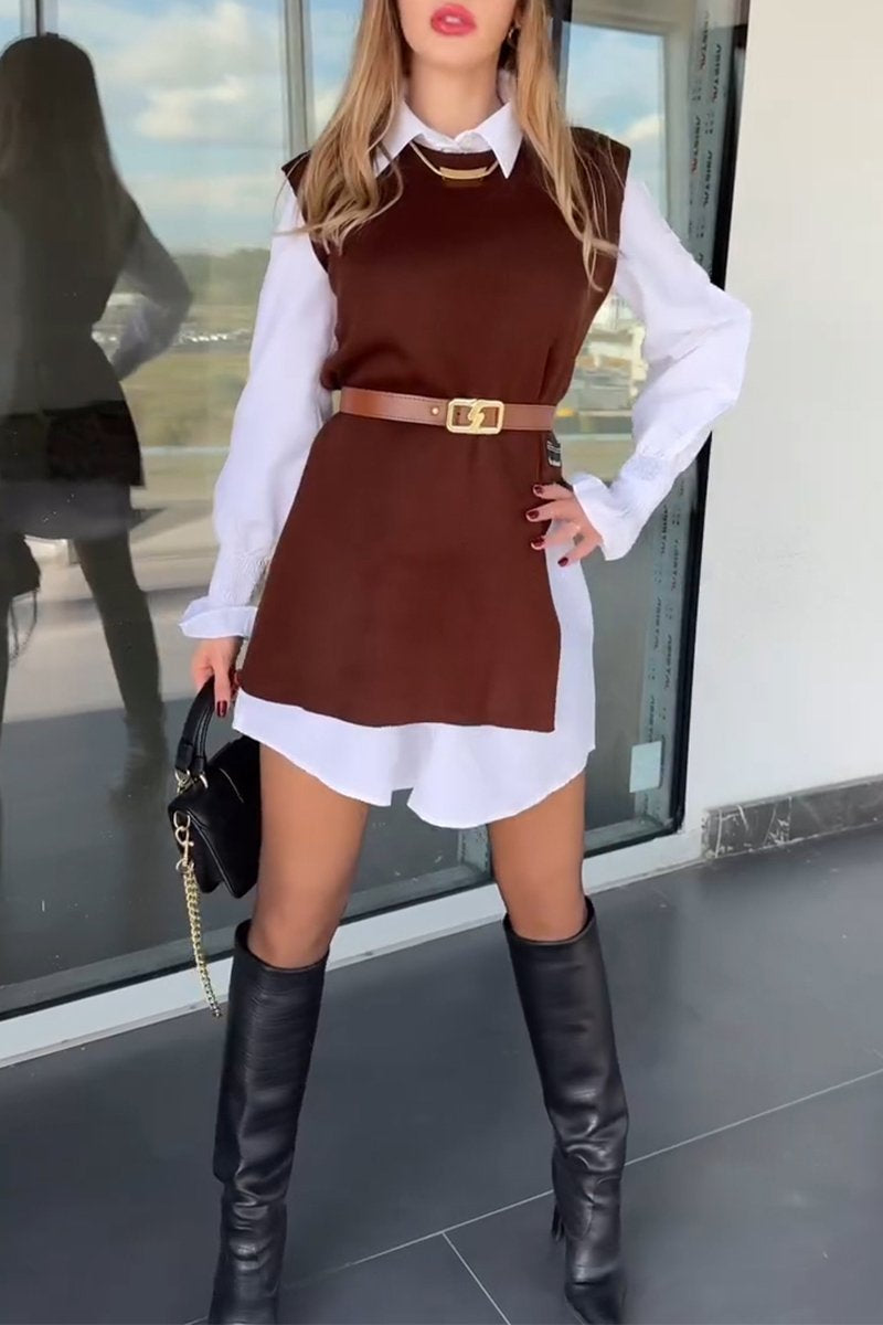 Women's Lapel Long Shirt + Sweater Two-piece Set
