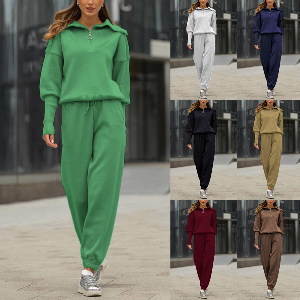 NEW🔥 2024 Women's Cotton Two-Piece Oversized Half-Zip Lapel Sweatshirt Sweatpants Casual Suit