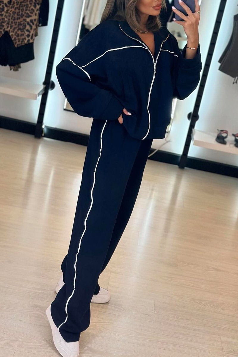 Women's Casual Round Neck Zipper Two Piece Suit