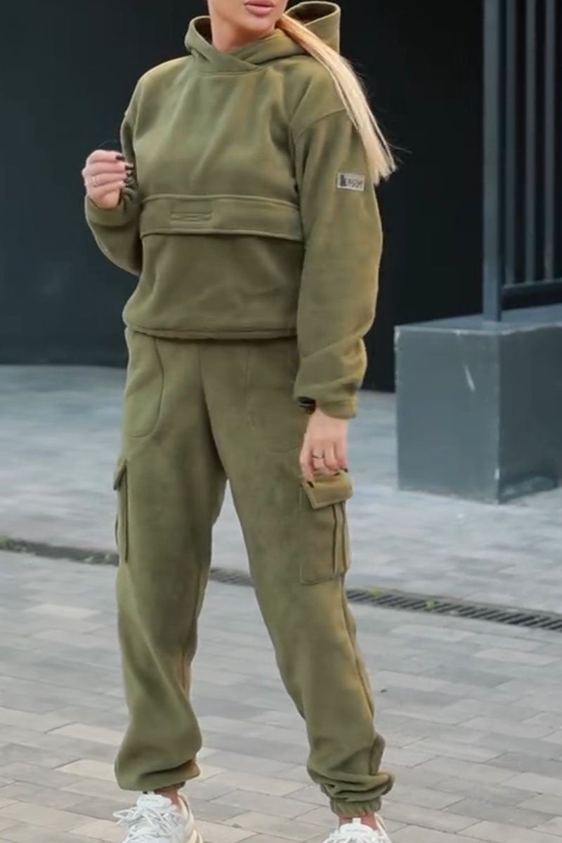 Casual Solid Color Pocket Hooded Two-piece Set