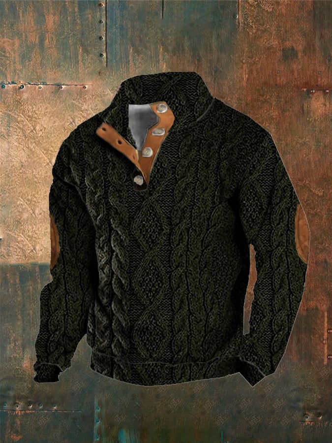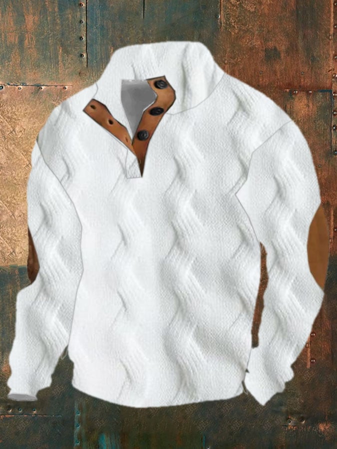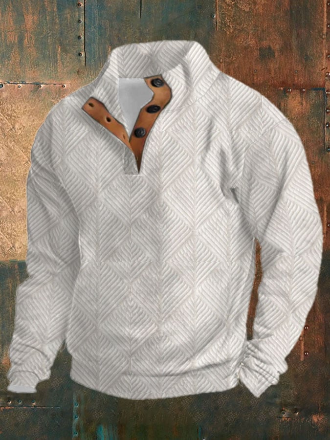 Men's Casual Jacquard Loose Half Button Standing Collar Pullover Sweatshirt