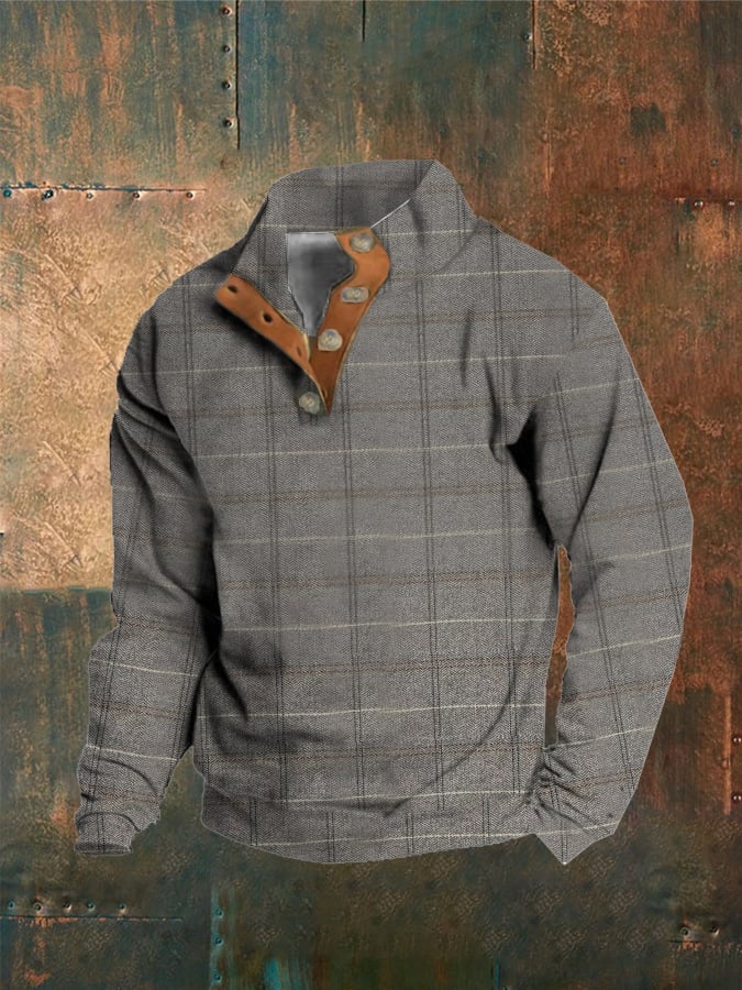 Men'S Plaid Print Button Casual Sweatshirt