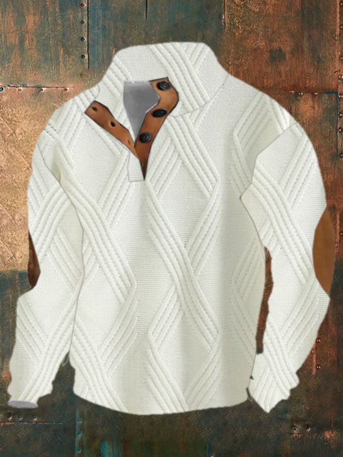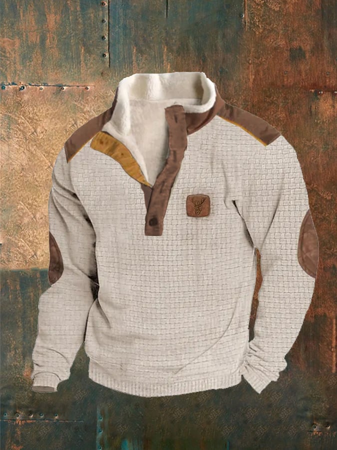 Men's Vintage Herringbone Contrast Patchwork Lapel Buttoned Sweatshirt