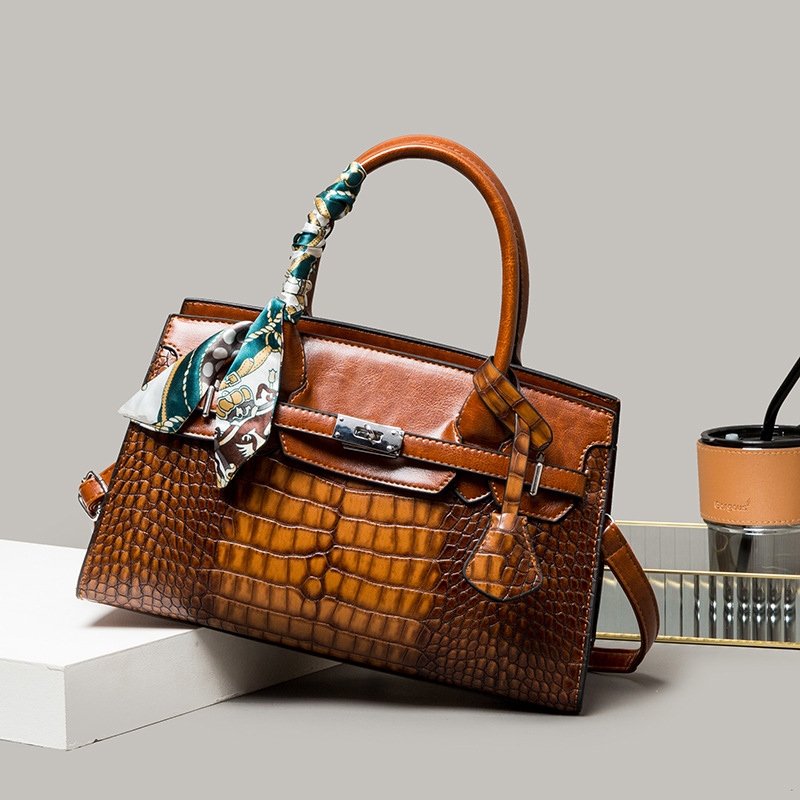 Middle-aged Mom Fashion Textured Crocodile One-Shoulder Crossbody Bag