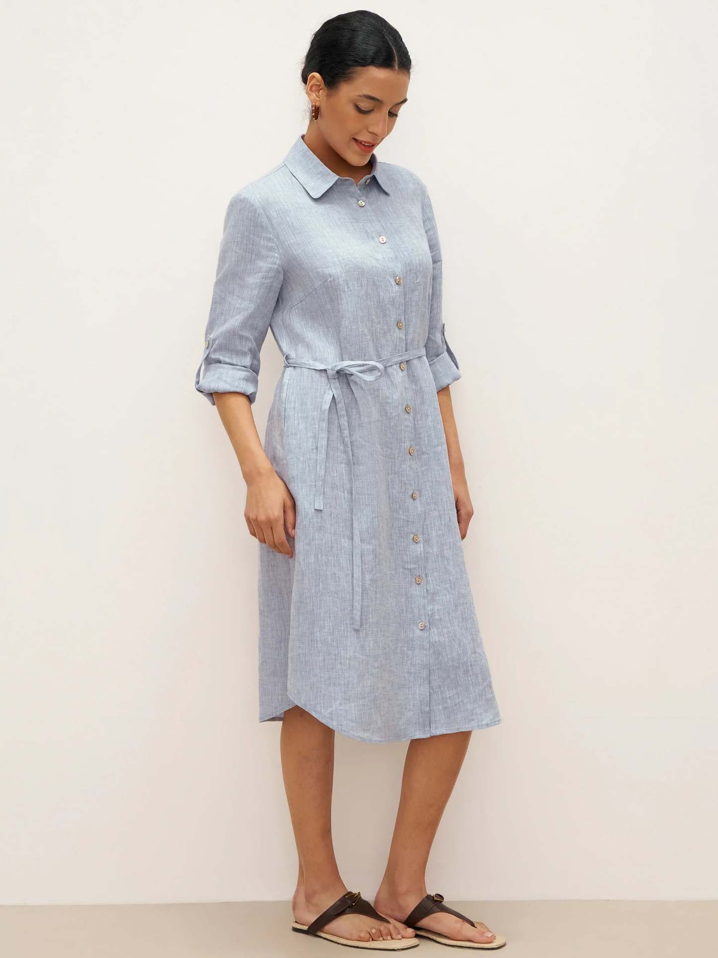 A classic and versatile linen shirt dress, comfortable and effortless, with excellent tailoring that showcases quality and taste.