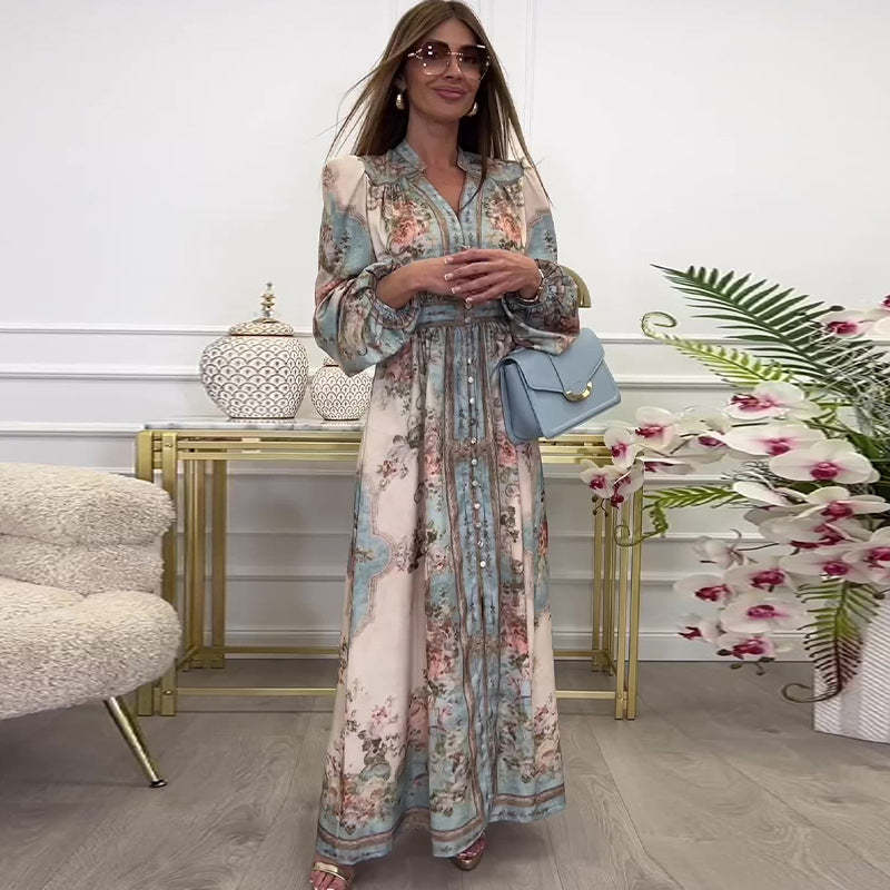 Package Included:1* Elegant V-Neck High Waist Buttoned Floral Dress