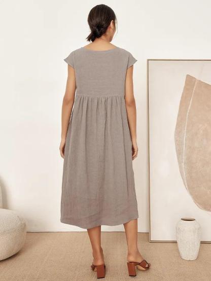 Embrace elegance with our light lilac pinstripe linen maxi dress. Perfect for serene escapes and urban chic, it’s your go-to for effortless sophistication.