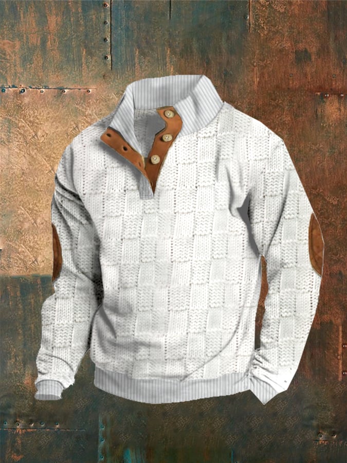 Men'S Plaid Print Button Casual Sweatshirt