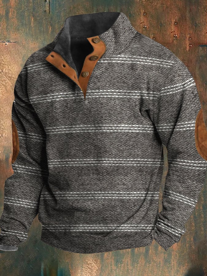 Men's Western Retro Print Element Design Stand Collar Button Sweatshirt