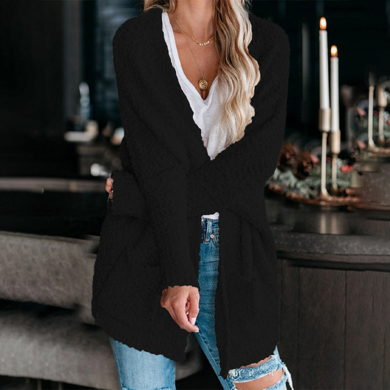 OPEN FRONT KNITTED DESIGN: This cardigan boasts a chic open front, blending a textured knitted design with effortless style. Perfect for layering over tops or dresses, it offers a sophisticated, refined look without the need for buttons or zippers.