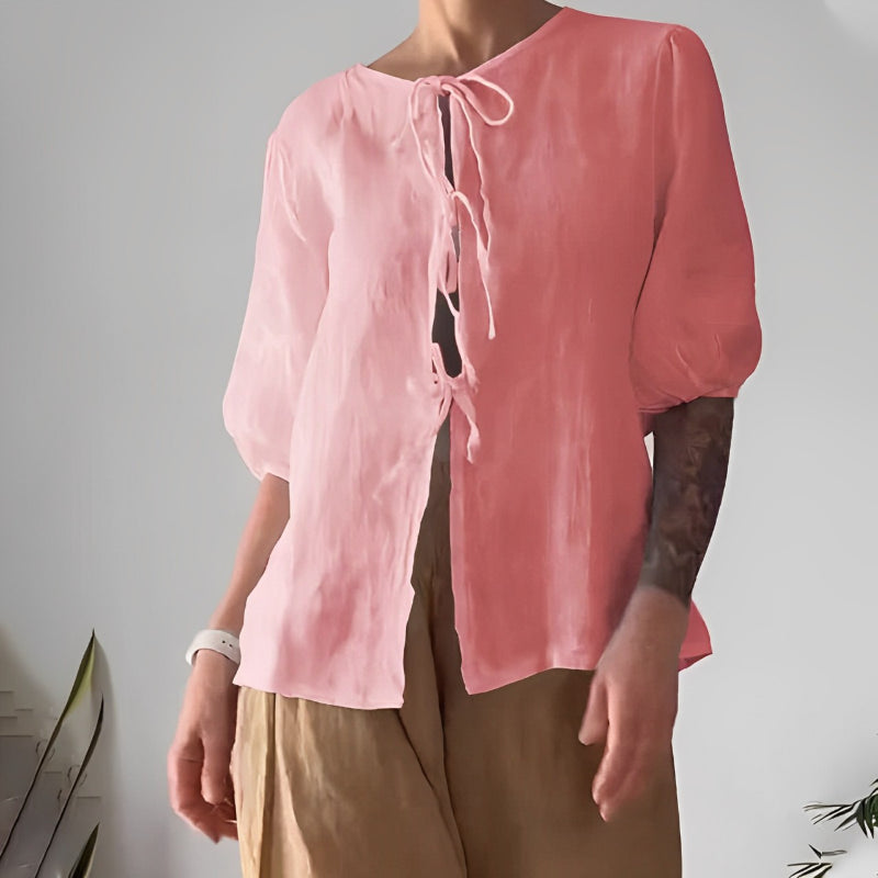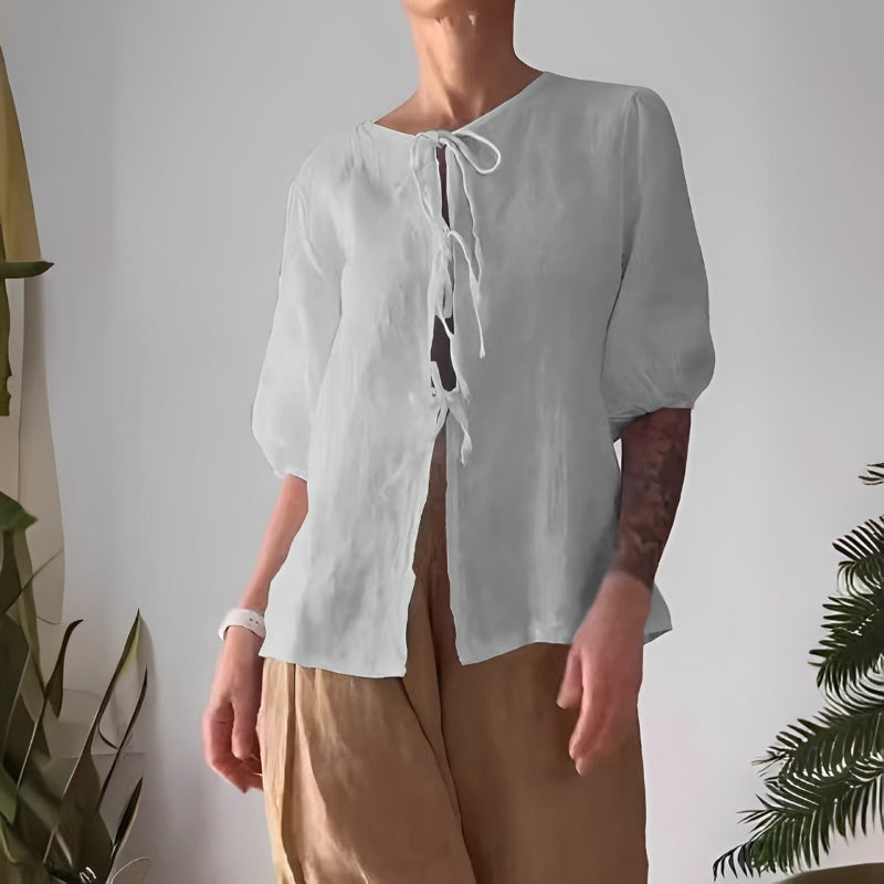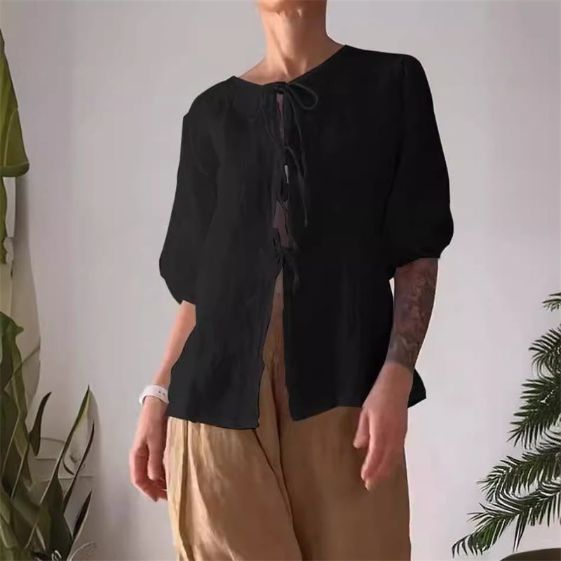 STYLISH DESIGN - The top features a charming tie-front design, adding a sense of style to your overall look. The flowy wide-leg pants provide a relaxed fit, flattering any body type while ensuring comfort without sacrificing style.