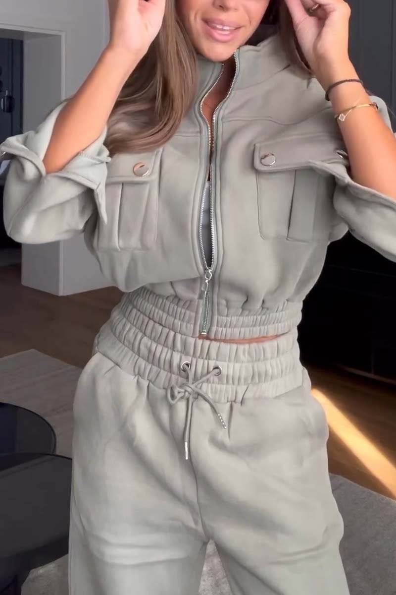 Women's Casual Multi-Pocket Stand Collar Sports Suit