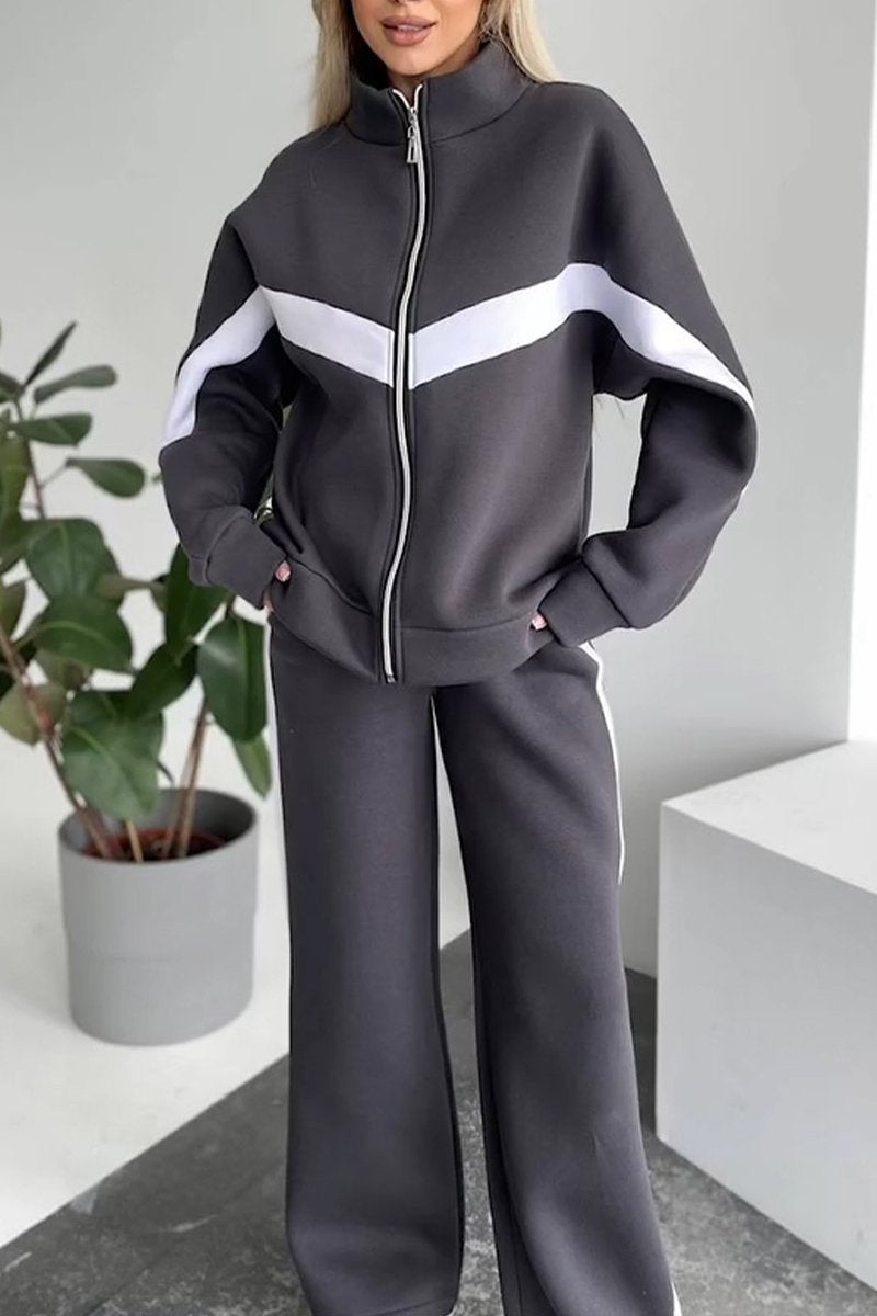 Women's Casual Stand-up Collar Contrast Color Two-piece Suit