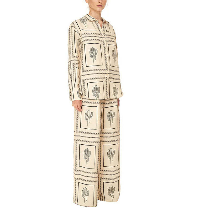1 * Women's Geometric Print 2-Piece Set - Shirt and Wide Leg Pants