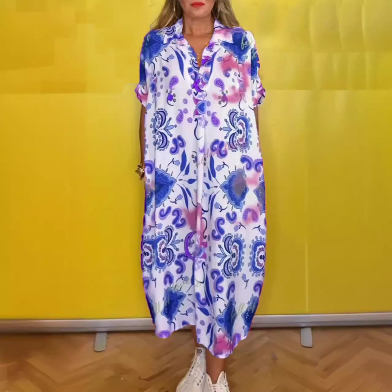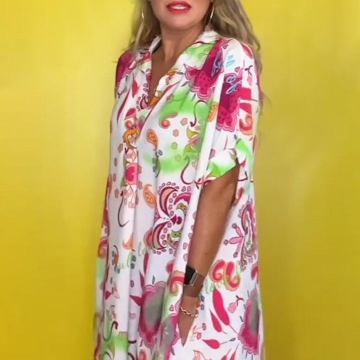 STYLISH AND COMFORTABLE DESIGN: This loose printed dress with a turn-down collar offers a chic, casual look while providing comfort all day long. Ideal for various occasions, from casual outings to relaxed gatherings.